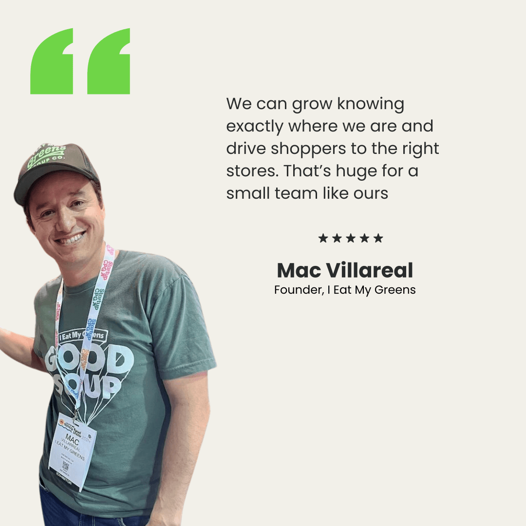 I Eat My Greens makes chef-crafted, plant-based fresh soups that feel homemade. As a fast-growing CPG brand, Mac and his team weren’t just looking for a store locator, they needed a smarter way to scale retail without losing sight of where their products were sold. Partnering with Dathic made it easy to keep shoppers informed, expand store visibility, and stay accurate—all while keeping internal processes lean and efficient.